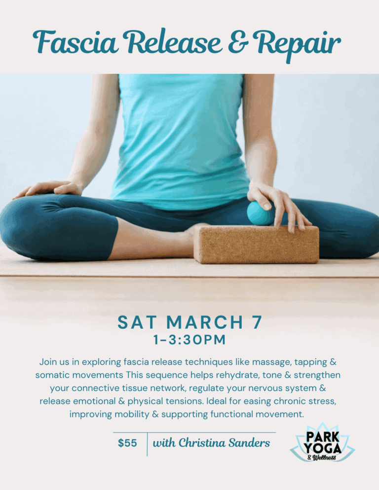 Join us for a deeply restorative Full Body Fascia Release & Repair session exploring fascia release techniques such as massage, tapping, and gentle somatic movements. This guided sequence is designed to rehydrate, tone, and strengthen your connective tissue network while helping to regulate the nervous system and release stored emotional and physical tension.