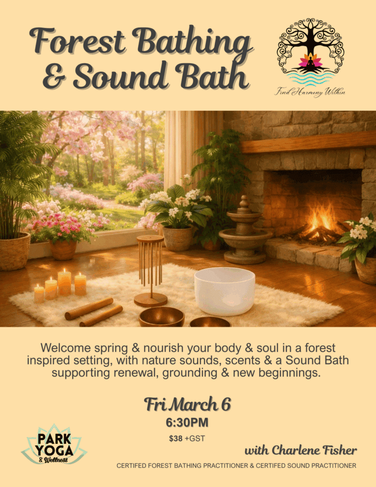 In this unique indoor session, you’ll be gently guided through an immersive journey using nature sounds, earthy scents, and sound bath instruments to help you reconnect, ground, and unwind.