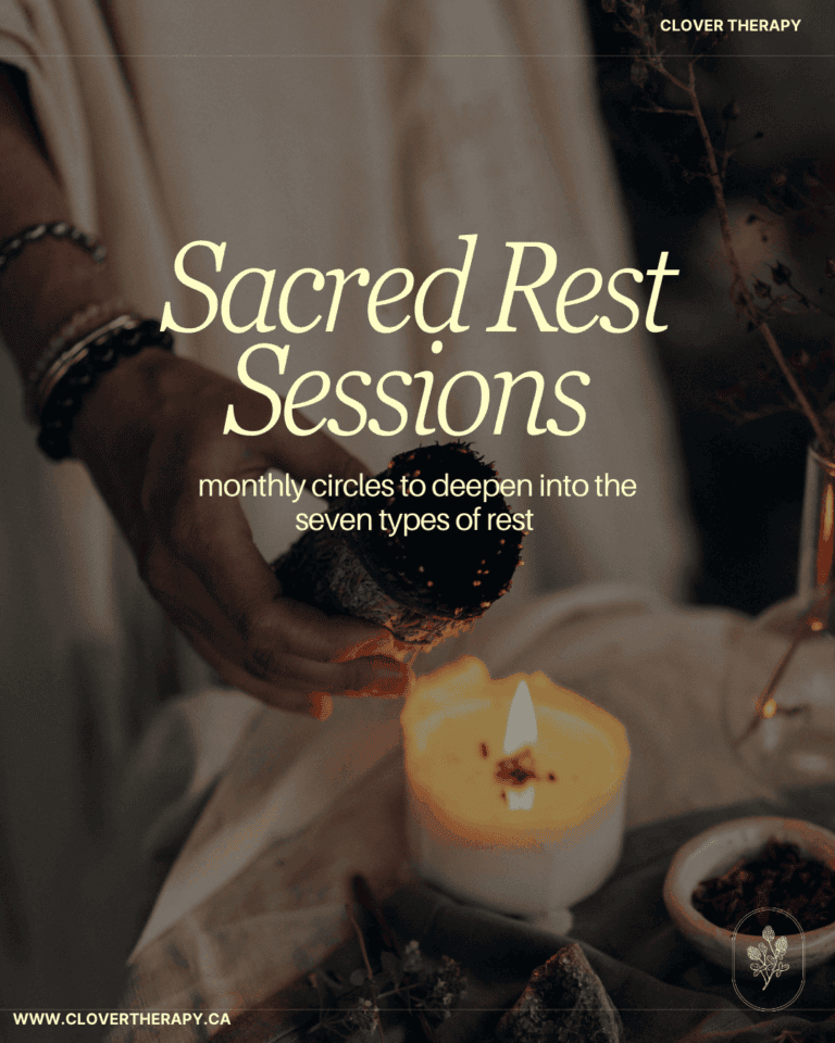Sacred Rest Sessions are a monthly gathering designed to honor the seasonal transitions of our outer and inner worlds, while weaving in the seven types of rest: physical, mental, emotional, sensory, creative, social, and spiritual. Together, we will create intentional space for slowing down, reflecting, and reconnecting with ourselves and each other.